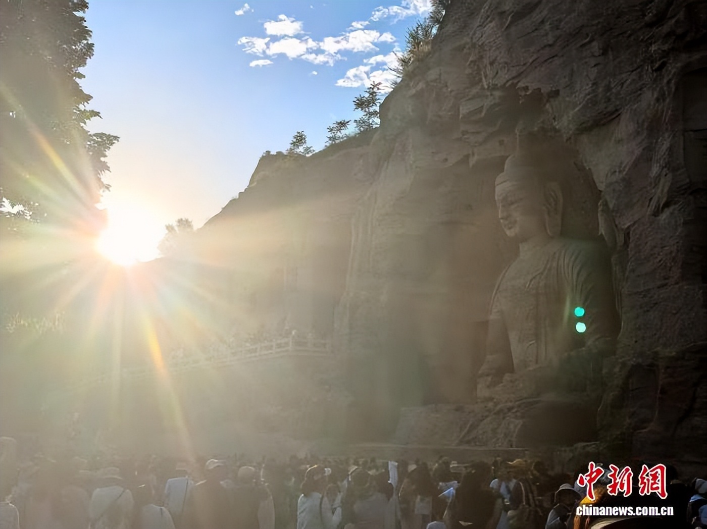 中新网大同4月2日电 (记者 胡健)初春的山西大同,武周山南麓的云冈石窟景区内,英语、法语、日语交织的语言此起彼伏。来自世界各地的游客驻足在第20窟露天大佛前,仰望着这尊高约13.7米的北魏佛像,在社交媒体发布与千年佛像的合影。