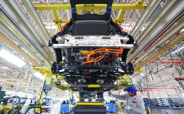 2026年1月8日,在奇瑞新能源汽车股份有限公司石家庄分公司总装车间,员工装配新能源汽车。新华社发(梁子栋摄)