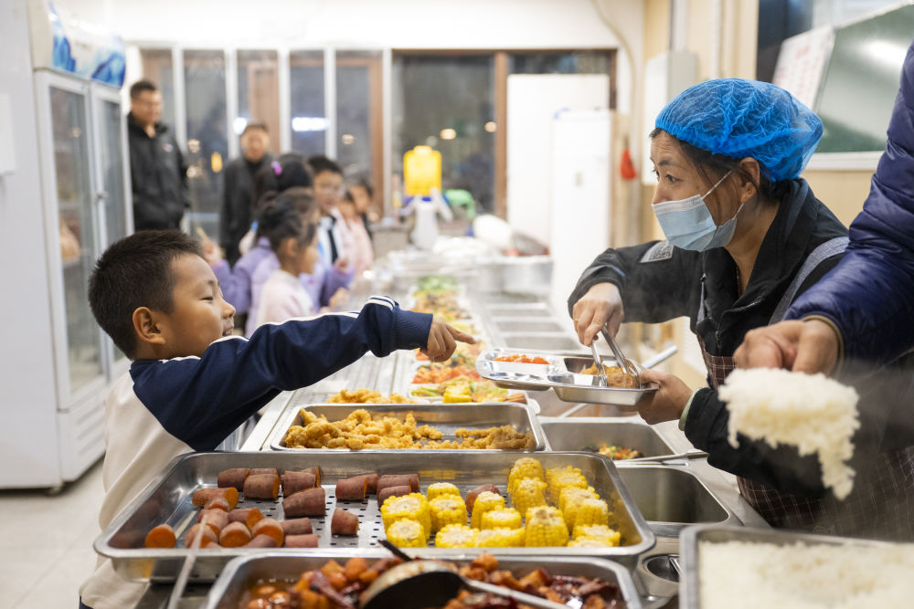 2025年11月25日,放学的小朋友在雄安新区容东片区春明北社区食堂内用餐。春明北社区食堂每天傍晚为周边学生提供营养实惠的晚餐,有效减轻双职工家庭负担。