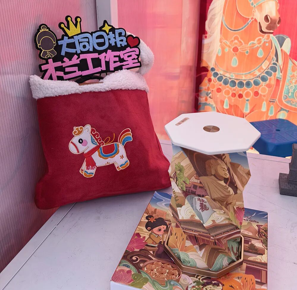 线下文创出圈的同时,数字文创更添新意。大同日报传媒集团推出“五马巡城”新春数字文创活动,打造“城垣逐风·红缨报春”“明堂问道·白马呈祥”等五款融合木兰与大同文脉的“福马”卡片,用户集齐即可合成珍藏版“悬空驭风·金驹献瑞”数字文创,实现永久数字存证并解锁专属权益。从实体文创到数字文创,大同让木兰IP打破时空界限,从文化符号转化为可感可触、可藏可享的生活载体,线下门店客流激增、线上订单络绎不绝,为文旅融合注入强劲新动能。
