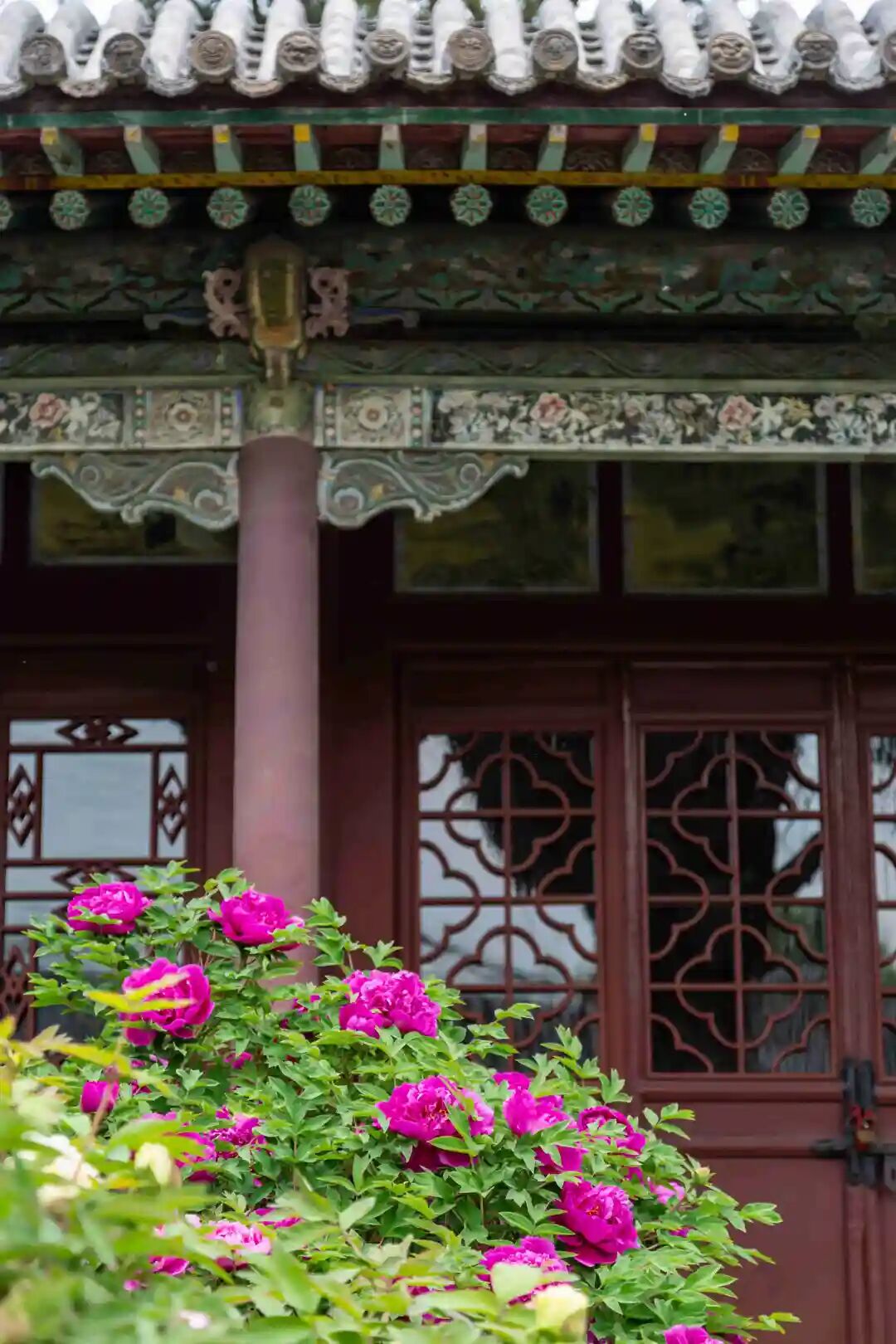 每年的四五月是牡丹盛开的时节,晋祠的牡丹园姹紫嫣红,美不胜收。粉色的映日红、白色的景玉、红色的黑海洒金等各色牡丹迎风绽放、傲立枝头。