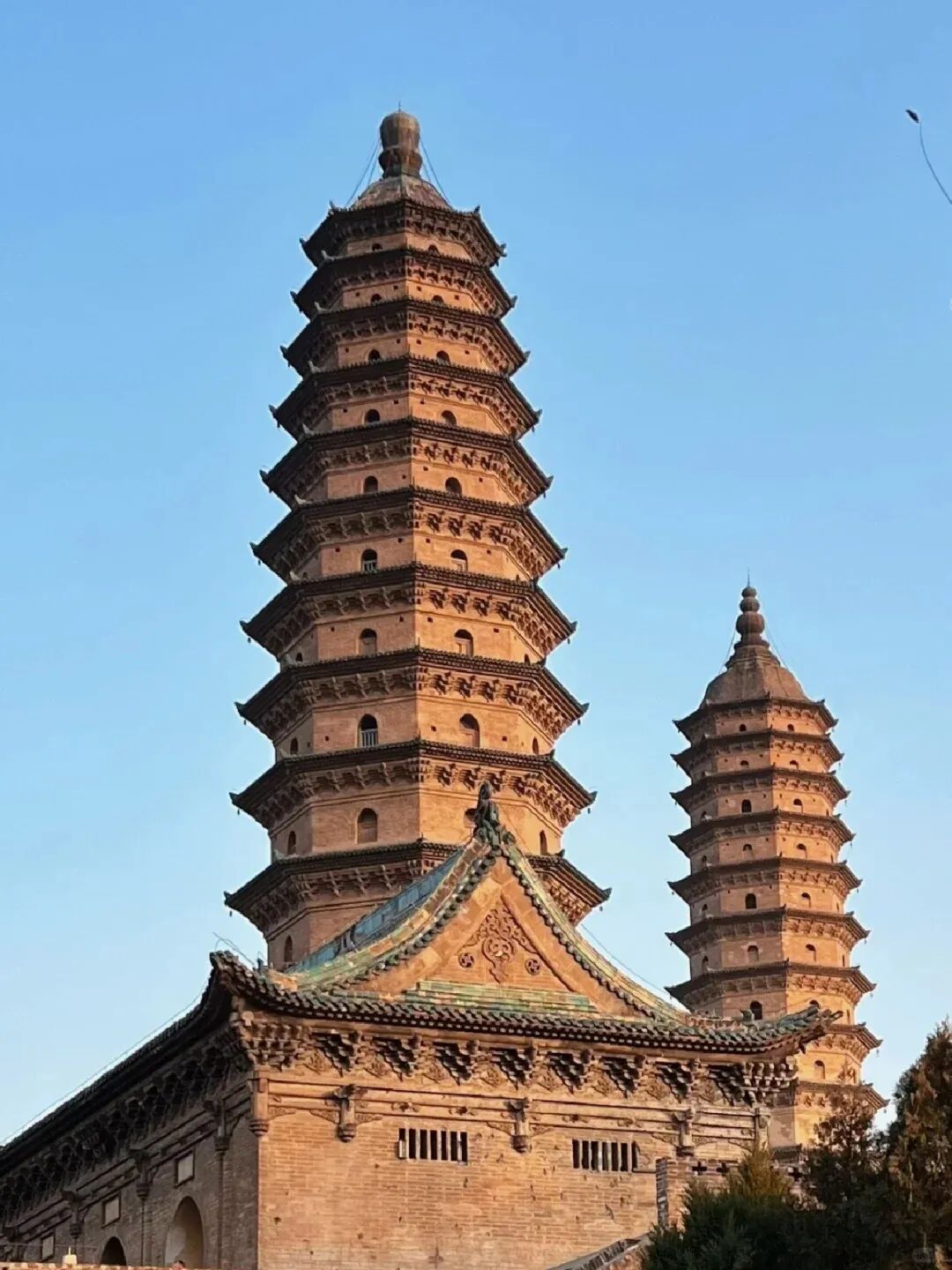 「永祚寺」,又称双塔寺,这里是全国唯一一座完全由砖仿木无梁建筑组成的寺院,在全国砖制双塔的实例中,永祚双塔是形制最完善、规模最大、塔身最高的一组,自古便是太原八景之一。