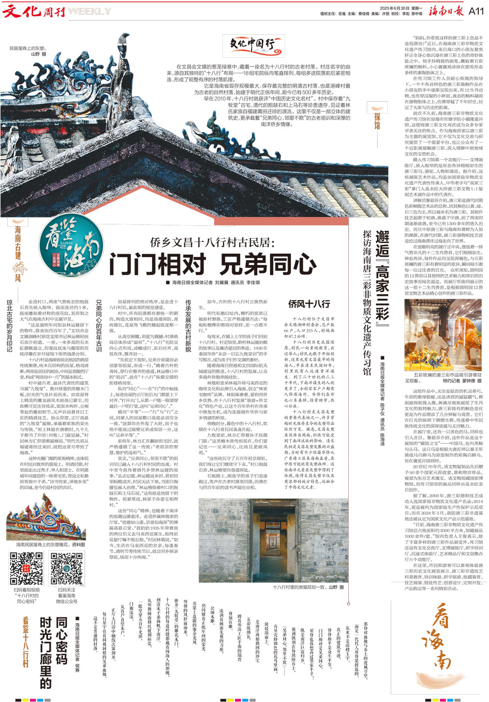 早在2010年,十八行村就获评“中国历史文化名村”。村中保存着“九牧堂”古宅、清代的抱鼓石和上马石等珍贵遗存,见证着林氏家族自福建莆田迁琼的源流。这里不仅是一部立体的建筑史,更承载着“兄弟同心,邻里不欺”的古老祖训和深厚的南洋侨乡情缘。