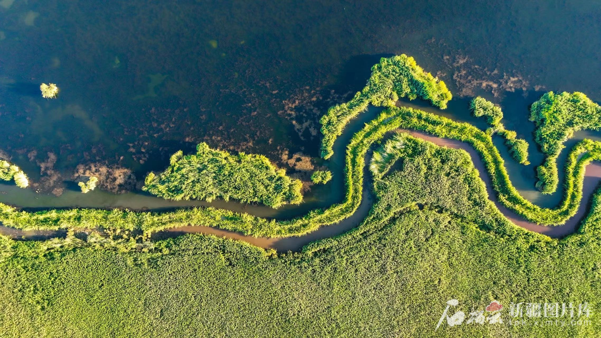 航拍环湖路沿途的博斯腾湖湿地。年磊摄