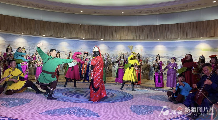 博湖县蒙古族非物质文化遗产传承保护中心的演员和民间艺人在表演舞蹈。天山网-新疆日报记者 赵梅摄