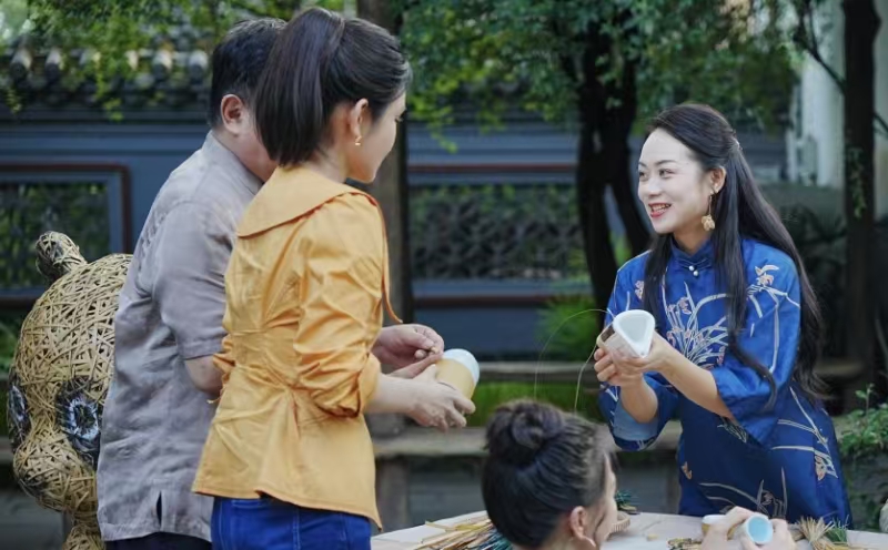 当然,文旅发展成效如何,最直接的体现是能否让村民受益。村民倪龙2023年返乡,与妻子共同办起民宿“竹里香居”。竹编屏风、竹制灯罩,将民宿装点得古朴雅致。“为了将竹文化和本地川西林盘的民俗生活紧密结合,我们特意设计了这种民宿风格。如果竹编艺人需要展示作品,我们也会提供场地,毕竟民宿也是村里的‘文化名片’。”倪龙说。